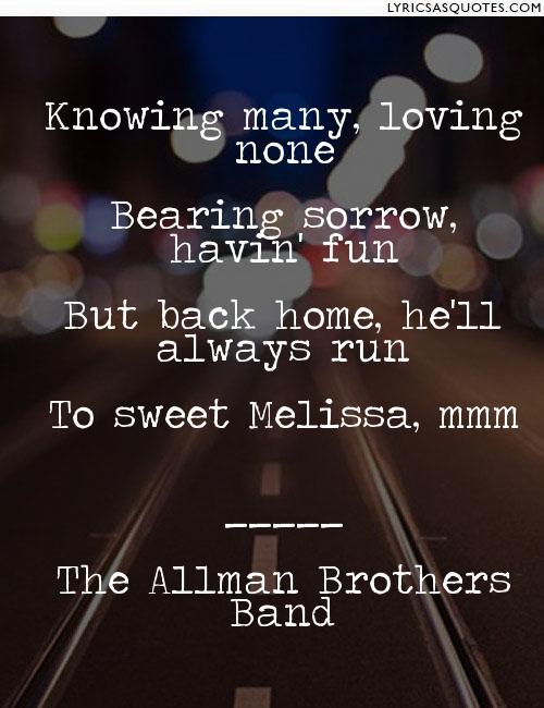 Back home he'll always run, to sweet Melissa.